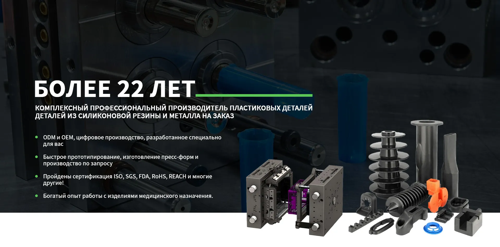 Универсальный поставщик деталей из пластика, силиконовой резины и металла, обладающий передовым оборудованием и разнообразными технологиями производства. У нас есть различные производственные процессы, позволяющие контролировать качество сложных сборочных проектов: